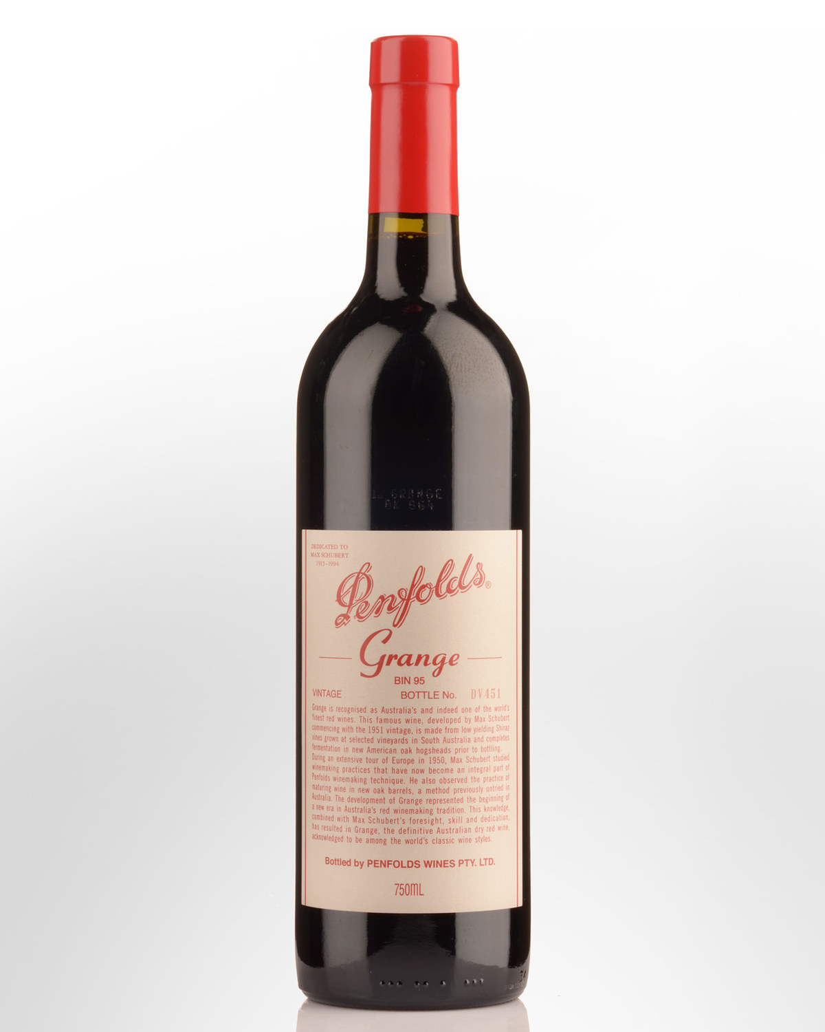 Peter Gago - Penfolds Chief Winemaker VINTAGE CONDITIONS Above-average winter rainfall led into a promising vintage, characterised by mild conditions up until February, followed by warmer weather conditions throughout March and April. Penfolds' South Australian vineyards fared well, producing wines of elegance and intensity. Produced from a blend of 96% Shiraz and 4% Cabernet Sauvignon this wine was matured for 16 months in 100% new American oak hogsheads. Dark, deep red colour. The nose is enticingly fragrant, yet at once 'Grange' -elements of cola, bay-leaf, malt, Indian spices & nougat. An ethereal oriental lift of glazed Peking Duck is interspersed with fermented black Chinese tea. Oak at one with the wine, other aromatics unite to create a continuum of spice & fruit. Impressive. The palate is seamless redefined. Classic Grange structure - tight, defined & balanced, with 'slatey' / sandy tannins. Saturated fruits - blackberry and concentrated Satsuma plum skin. A darkened flavour theme of chocolate, liquorice and fermented black Chinese tea mask any overt presence of new oak, courting a long, effortless finish. Intense, powerful vs. composed, polished – an enviable counter-balance.